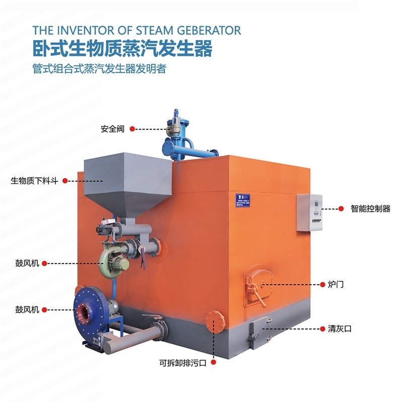 本公司生產的生物質蒸汽發生器是一種《無鍋筒》多管組合式蒸汽發生器,在設備內布置多層受熱面,經改進后外接水位電極控制外部用*溫材料*溫后,再用鋼板噴漆的外殼罩住,外觀整潔而又漂亮。用戶購回后,接上電源和水源后即可使用。本產品自動化程度*高,個性化的設計,
